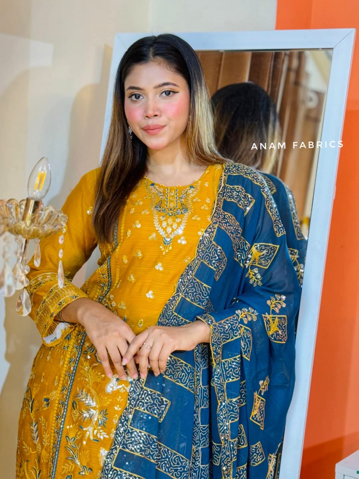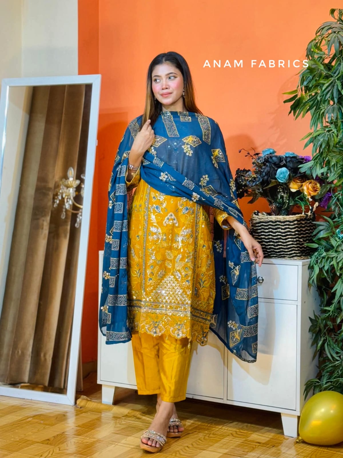 প্রিমিয়াম জরজেটের ওপর দৃষ্টিনন্দন এমব্রয়ডারি ও স্টোনের ছোঁয়ায় আনস্টিচড ড্রেস। সাথে আছে সেন্থোন সিল্কের সেলোয়ার ও ইনার, আর লেস বর্ডারযুক্ত এমব্রয়ডারি করা ওড়না। ঈদ, উৎসব ও সেমি-ফরমাল ইভেন্টের জন্য একেবারে পারফেক্ট।